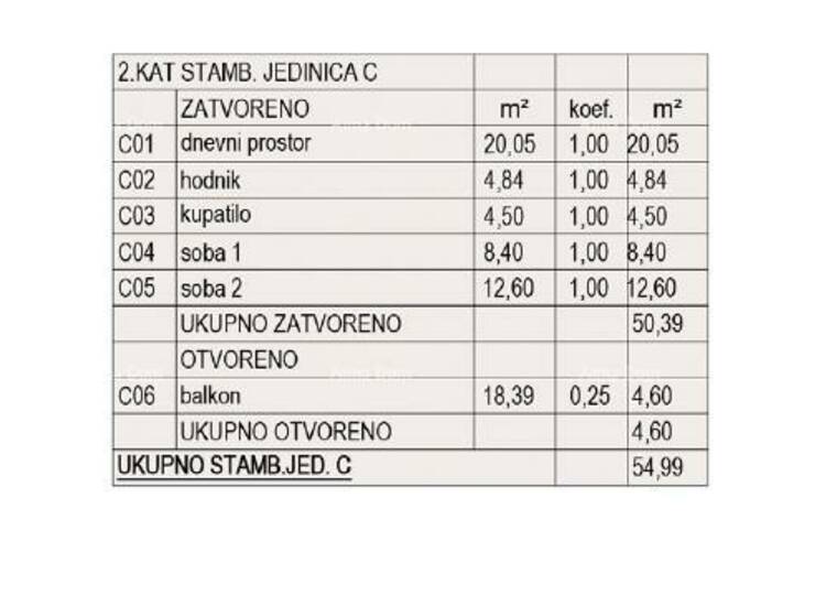 Stan C, nalazi se na 2.katu zgrade A2 i sastoji od: dnevnog prostora s kuhinjom i blagavaonom, 2 spavaće sobe, kupaone, hodnika, balkona.