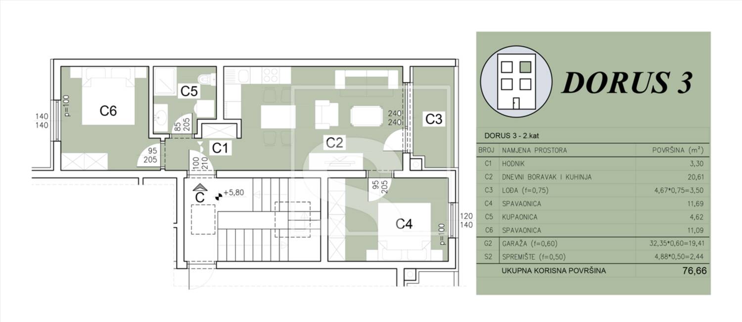 Dvosoban stan s velikom garažom - novogradnja - PRILIKA!