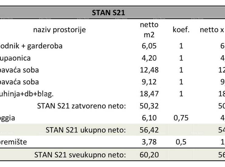 Cijena stana s parkirnim mjestom i spremištem iznosi: 216.324 eura.