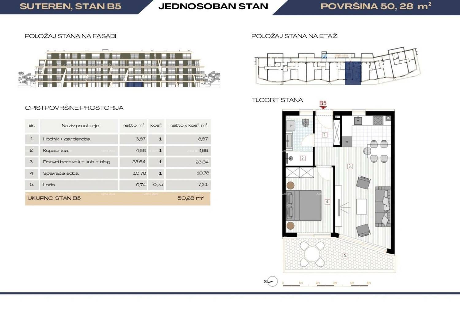 Stan B5, neto korisne površine 51.59m2(neto korisne površine 50.03m2), nalazi se u zgradi B.