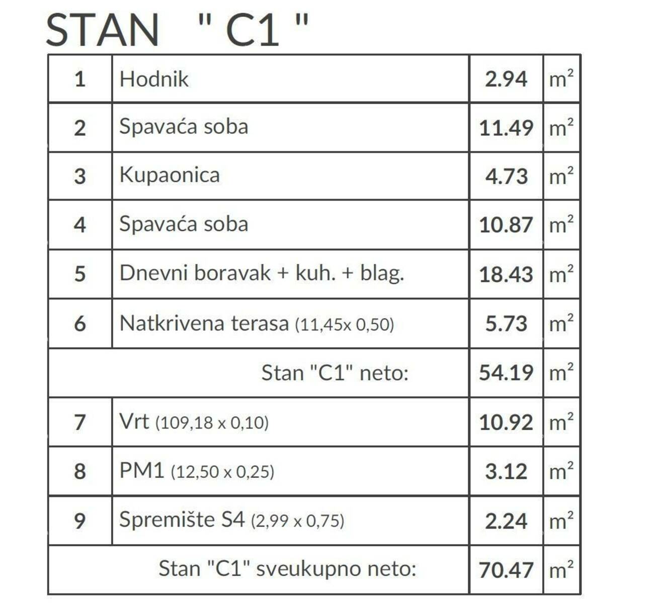 UKUPNA NETO POVRŠINA - 70,47 m²