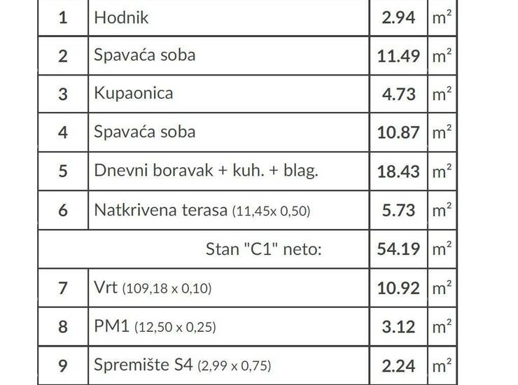Neto površina stana: 54,19 m²