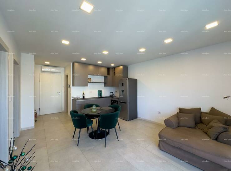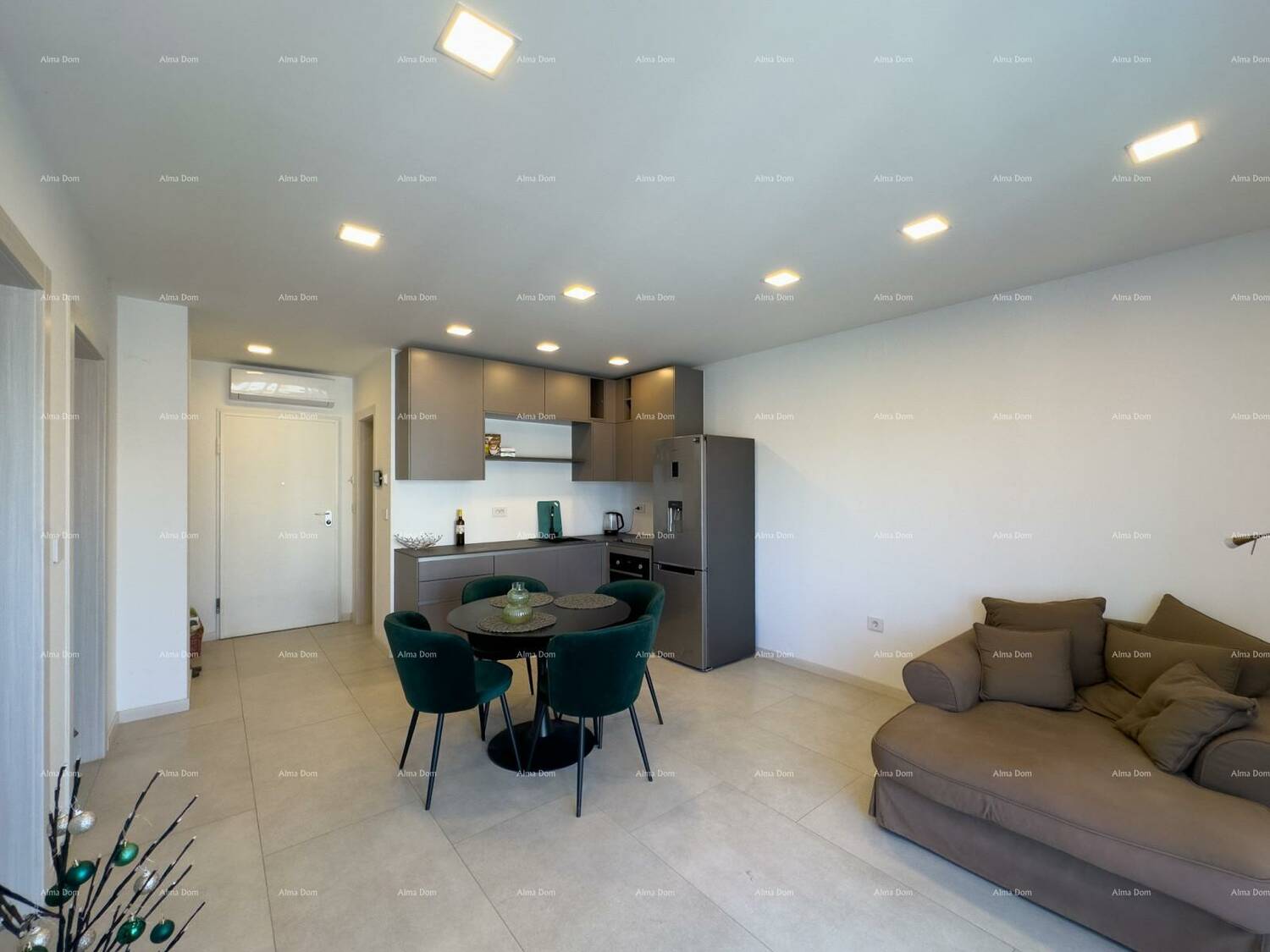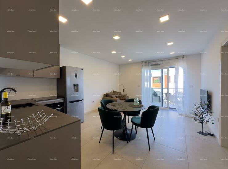 Prodaje se moderan i potpuno namješten stan u Štinjanu, Pula, smješten u kvalitetnoj novogradnji u mirnom i uređenom okruženju.
