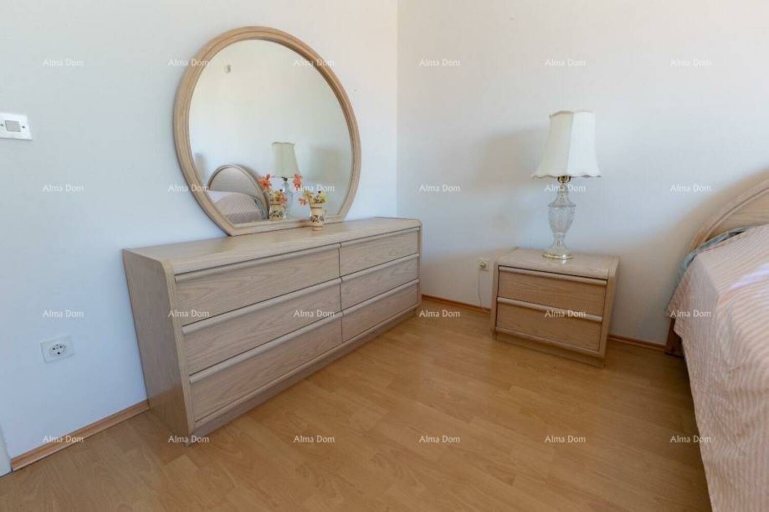 Stan je u potpunosti namješten i odmah useljiv. Sastoji se od dvije velike spavaće sobe, prostranog dnevnog boravka povezanog s kuhinjom, kupaonice, dodatnog manjeg WC-a, ostave i balkona.