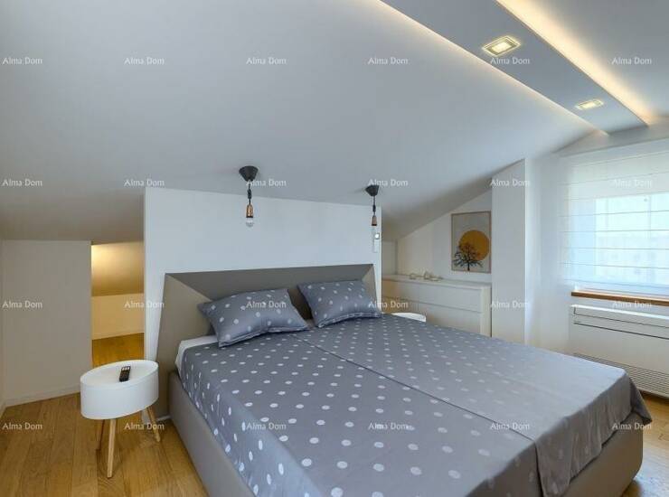 Opremanje: Stan je opremljen visokokvalitetnim namještajem i sanitarijama. Kuhinja i garderobni ormari rađeni su po mjeri. Podovi su od kvalitetne keramike i parketa, a vanjska stolarija je PVC sa električnim roletama i komarnicima.