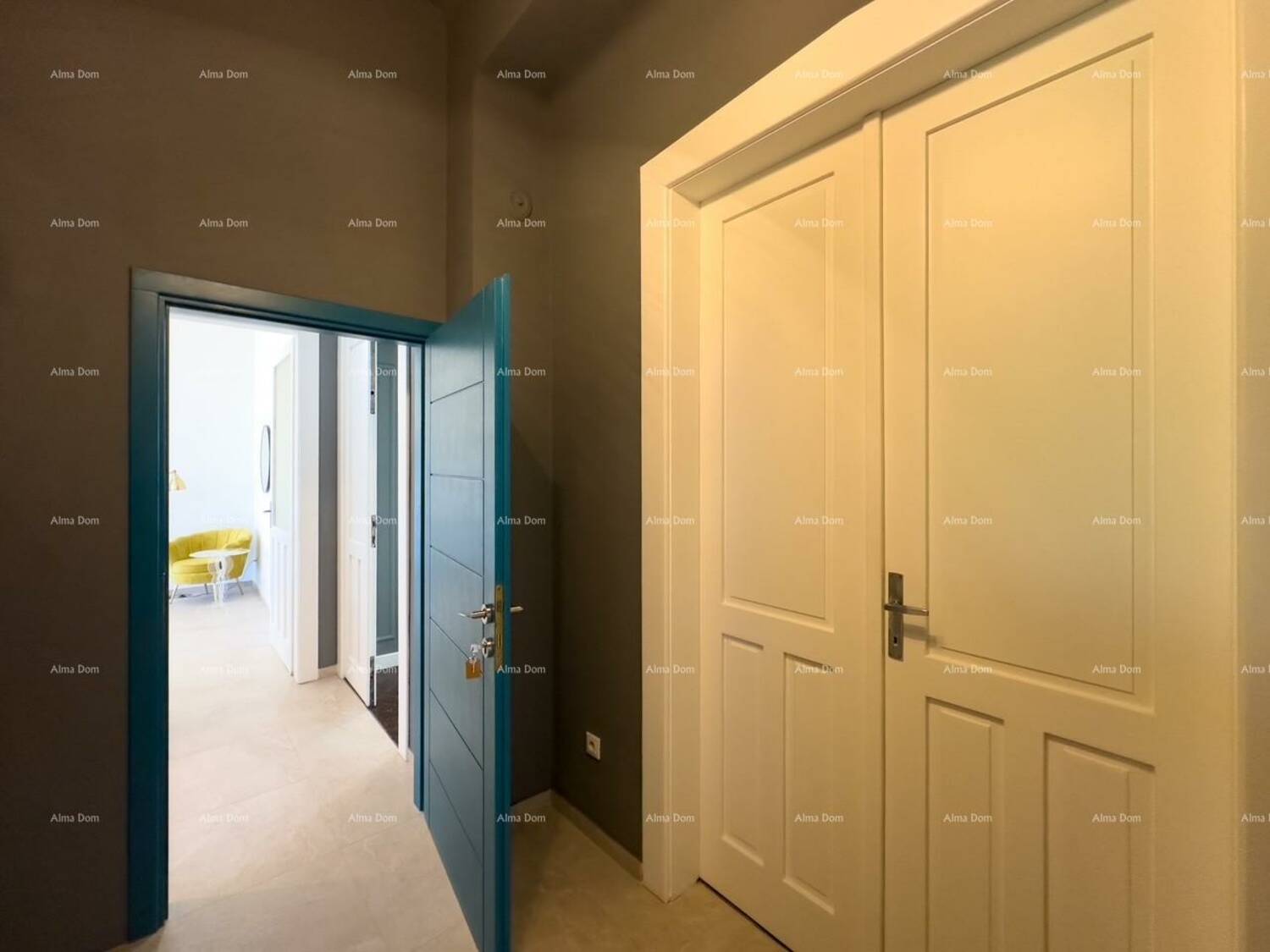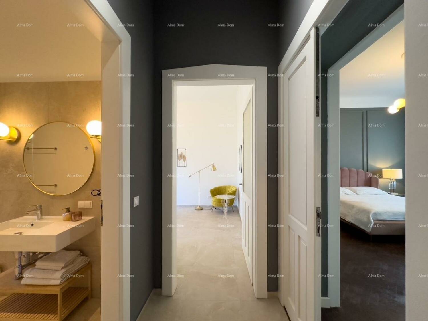 Između ta dva odvojena dijela nalazi se još jedna spavaća soba kojoj se može pristupiti iz obije jedinice te se može koristiti i sa jednim i sa drugim.