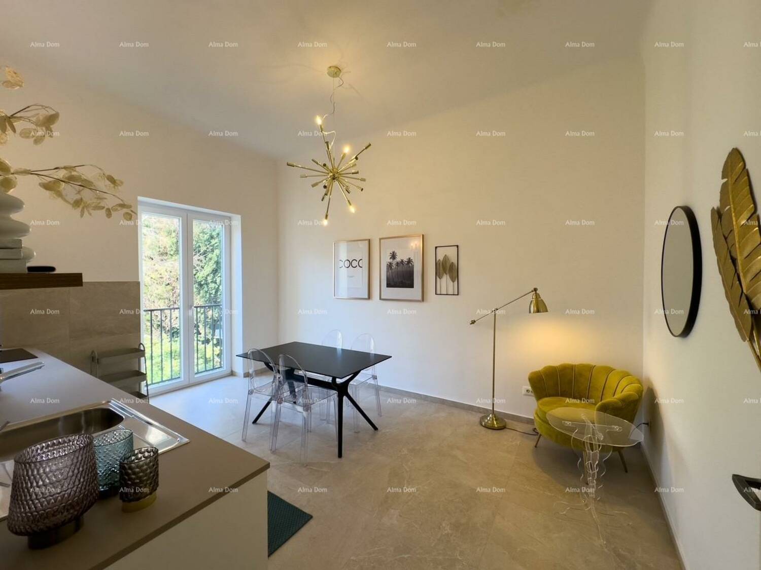 Prilikom renovacije stan je podijeljen u dva zasebna dijela koji se sastoje svaki od kuhinje sa blagovaonicom, kupatila i spavaće sobe.