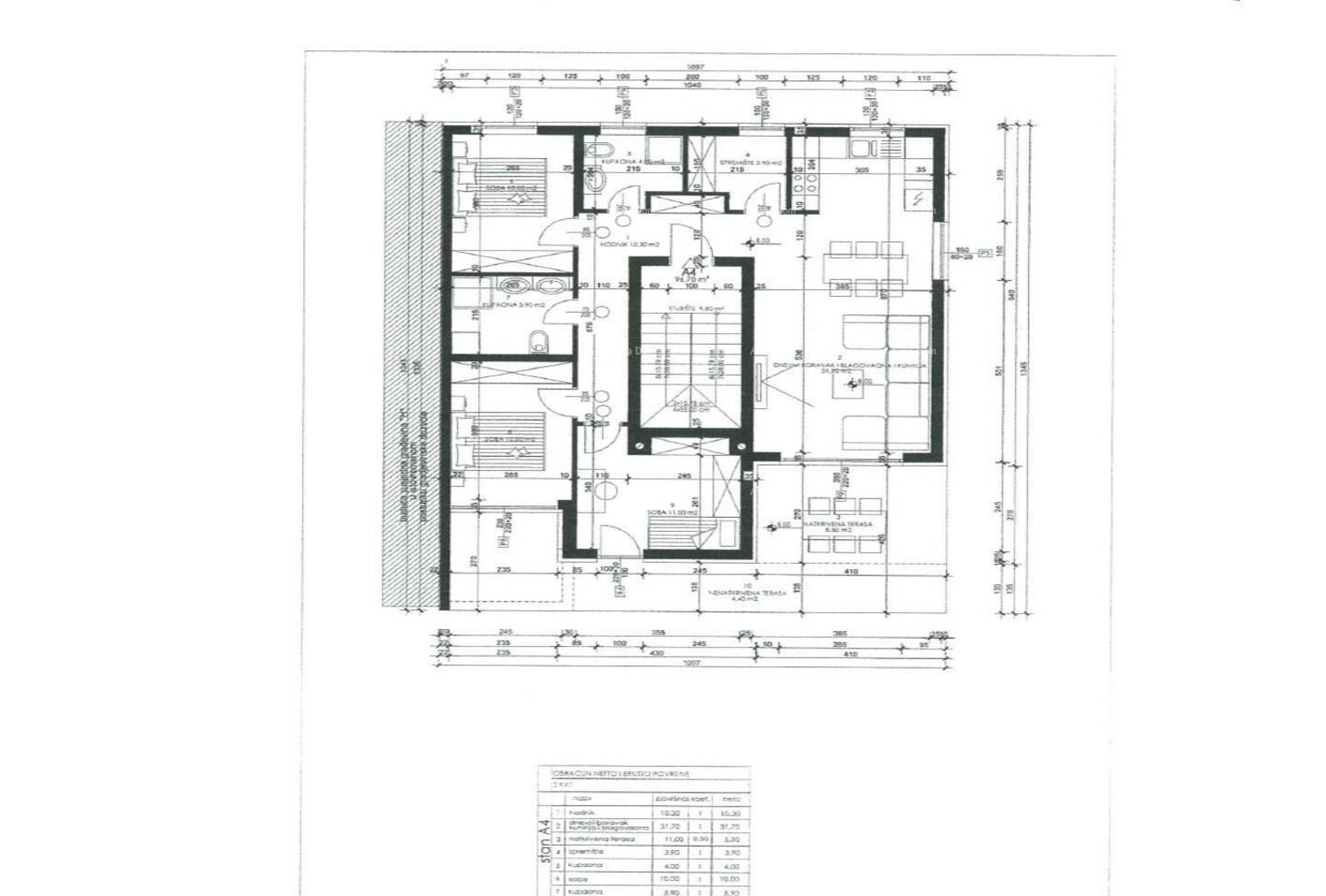 Dnevni boravak, blagovaona, kuhinja i kupatilo imaju podno grijanje.