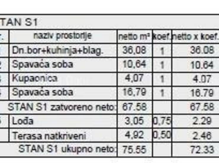 Prodajemo stan u novom stambenom kompleksu od 6 manjih, modernih, stambenih... Pula 249.000€ 3 320 €/m2 Novo 10 Tip Stan Površina 75 m2 Struktura 2 Detalji Tip Stan Struktura 2 Cijena 249.000€ Površina 75 m2 (3 320 €/m2) Površina zemljišta 0 Kat p Ukup. katova 3 Udaljenost od mora 0m Parkirno mjesto Da Ažuriran 05.04.2026 ID 105675 Opis Prodajemo stan u novom stambenom kompleksu od 6 manjih, modernih, stambenih zgrada. Stan S1, površine m2 (neto površine 75.55 m2) nalazi se u prizemlju zgrade 5. Stan se sastoji od hodnika +garderobe, dnevnog boravka s kuhinjom i blagavaonom, 2 spavaće sobe, 1 kupaone, lođe i natkrivenog balkona. Stanu pripada spemište i parkirno mjesto koji se dodatno naplaćuju. Za dodatne informacije, molimo kontakitrajte: Azra + 385 91 611 5706... Prikaži broj + 385 98 420 885... Prikaži broj azra@almadominvest.com Kontakt podaci Kontakt info Agencija Alma Dom Kontakt osoba Alma Dom Telefon 1 + 385 52 213 332... Prikaži broj Telefon 2 + 385 52 210 160... Prikaži broj Adresa Istarska 10 Pula, Hrvatska Kontakt forma Vaše ime Telefon (opciono) Email Pitanje U sledeće (antibot) polje upišite broj 3 slovima