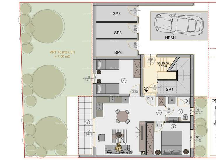 Prodajemo stan u novom stambenom kompleksu od 6 mjanjih stambenih zgrada. ... Pula 206.000€ 3 551 €/m2 Novo 9 Tip Stan Površina 58 m2 Struktura 2 Detalji Tip Stan Struktura 2 Cijena 206.000€ Površina 58 m2 (3 551 €/m2) Površina zemljišta 75 Kat p Ukup. katova 3 Udaljenost od mora 0m Parkirno mjesto Da Ažuriran 18.02.2026 ID 102266 Opis Prodajemo stan u novom stambenom kompleksu od 6 mjanjih stambenih zgrada. Stan S1, površine 58.03 m2 (neto površine 55 m2) nalazi se u prizemlju zgrade 3. Stan se sastoji od dnevnog boravka s kuhinjom i blgavaonom, 2 spavaće sobe, kupaone i natkrivene terase. Stanu pripada vrt površine75m2(neto 7.5m2). Stanu također pripada spemište i parkirno mjesto uz dodatnu nadoplatu. Za dodatne informacije, molimo kontakitrajte: Azra + 385 91 611 5706... Prikaži broj + 385 98 420 885... Prikaži broj azra@almadominvest.com Kontakt podaci Kontakt info Agencija Alma Dom Kontakt osoba Alma Dom Telefon 1 + 385 52 213 332... Prikaži broj Telefon 2 + 385 52 210 160... Prikaži broj Adresa Istarska 10 Pula, Hrvatska Kontakt forma Vaše ime Telefon (opciono) Email Pitanje U sledeće (antibot) polje upišite broj 3 slovima