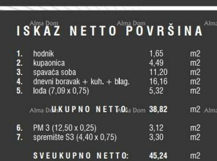 Ovom stanu pripada spremište i 1 parkirno - uključeno u cijenu.
