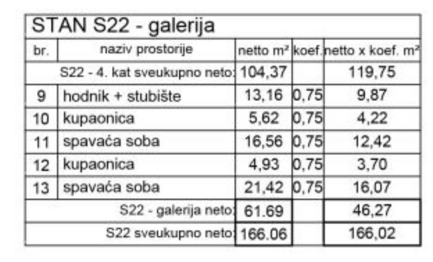 U ponudi imamo stan na 4.katu+galerija, dvoetažni od 166.02 m2.