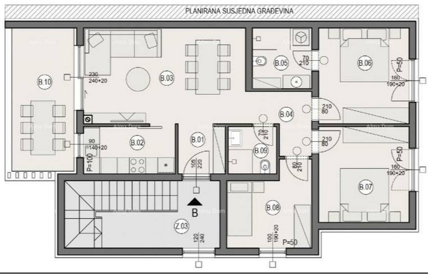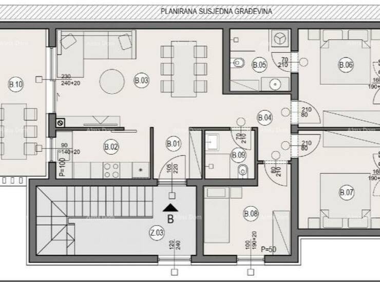 Stan B, površine 87.32 m2, nalazi se na 1. katu zgrade 3.