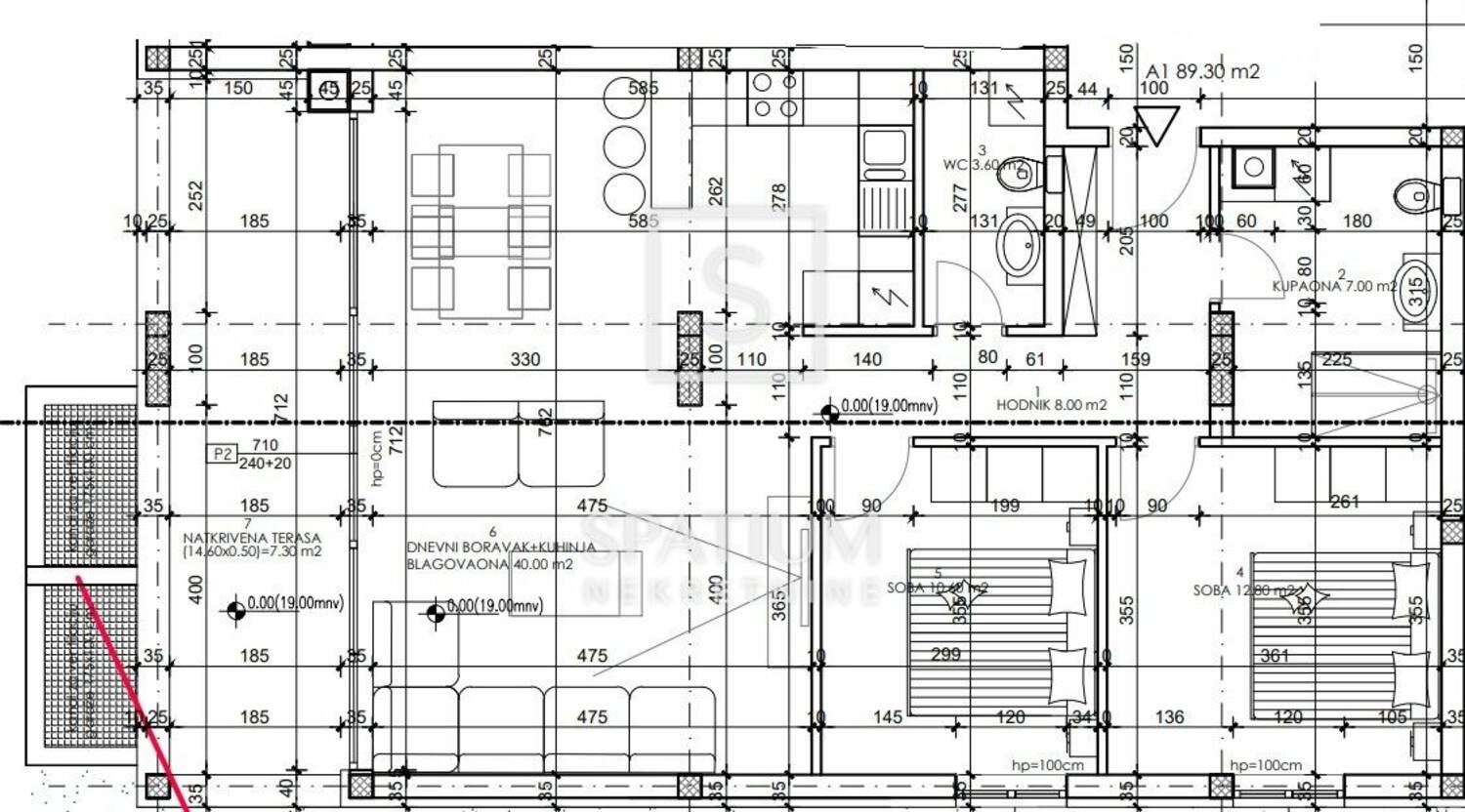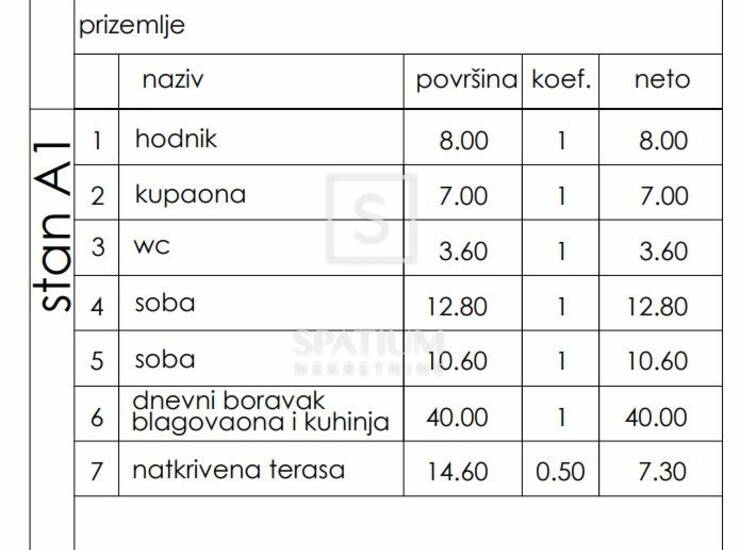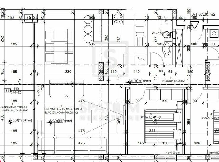 - dnevni boravak, blagovaona i kuhinja 40.00 m2