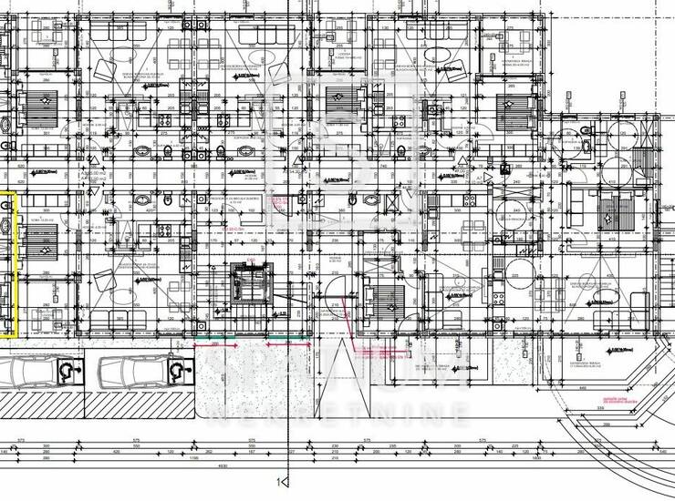 Zgrada sadrži ukupno 36 stambenih jedinica, a u podzemnim etažama nalaze se garaže na dvije razine, dok je izvan objekta osigurano dodatnih 11 parkirnih mjesta. Parkirna mjesta se naplaćuju posebno, a ovisno o veličini stana, stanu pripada jedno ili dva parkirna mjesta. Garaže su izvedene s industrijskim podom, a pristup svim etažama omogućen je liftom.