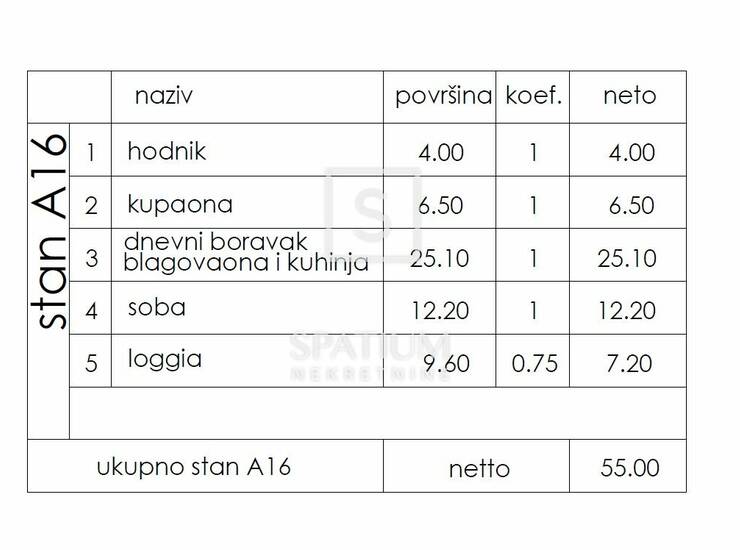 PULA, JEDNOSOBAN STAN A16 NA 1.KATU 55 m2