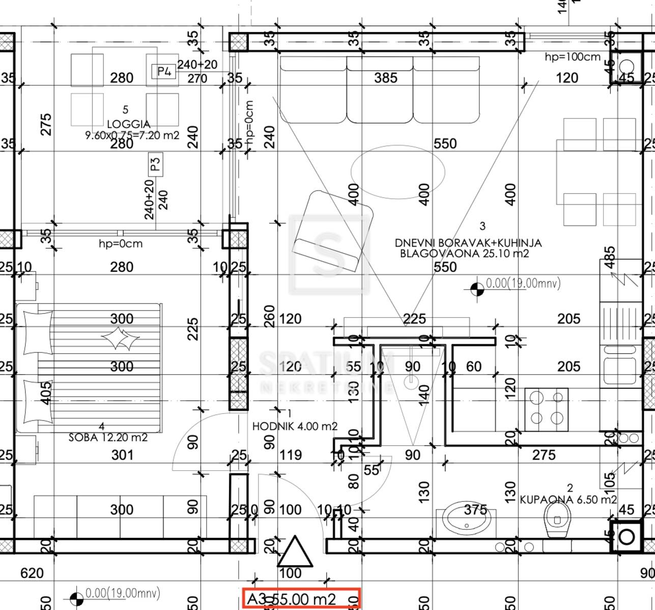 PULA, JEDNOSOBAN STAN A16 NA 1.KATU 55 m2