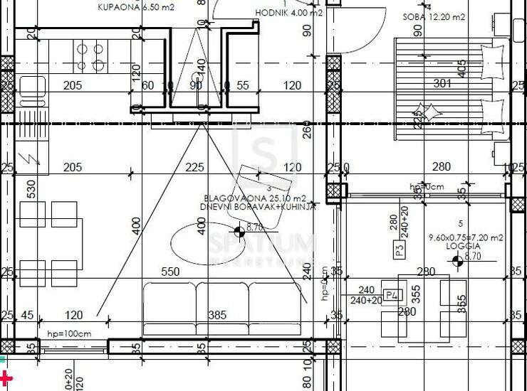 - dnevni boravak, blagovaona i kuhinja 25.10 m2
