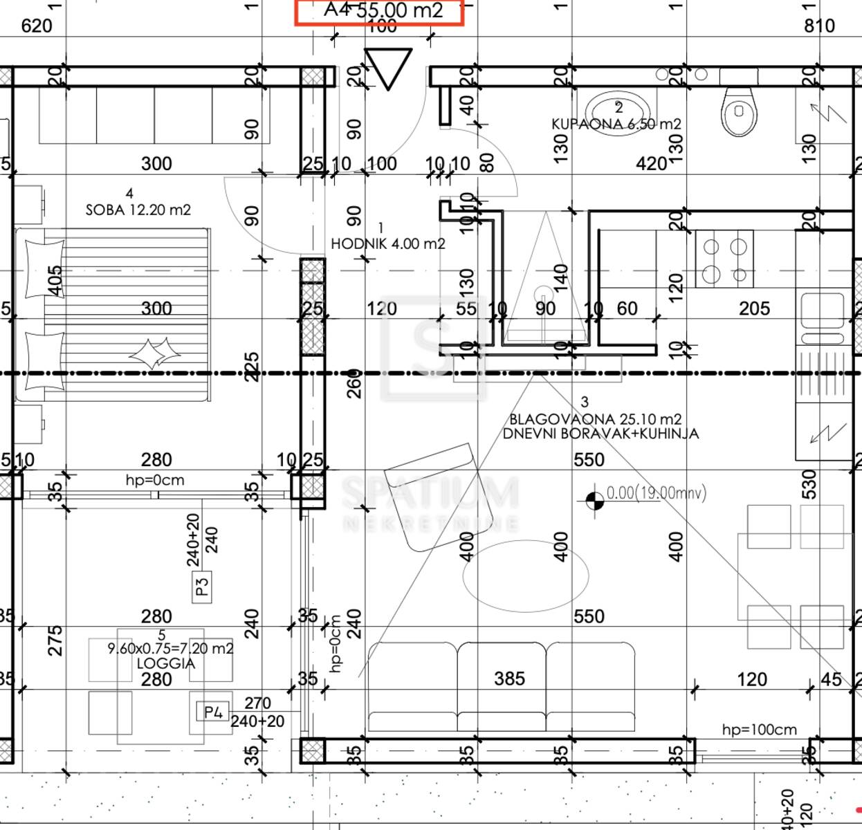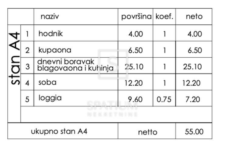 PULA, JEDNOSOBAN STAN A16 NA 1.KATU 55 m2