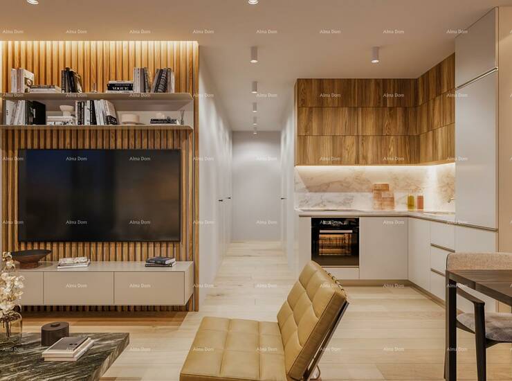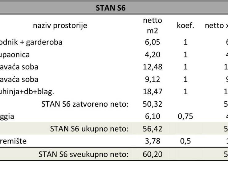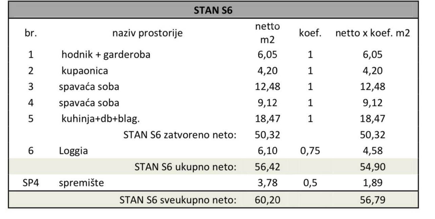U ponudi je stan na 1. katu višestambene zgrade s liftom. Stan će se sastojati od ulaznog hodnika+garderoba, 2 spavaće sobe, kupaonice, kuhinje s blagavaonom te dnevnim boravkom i loggia.