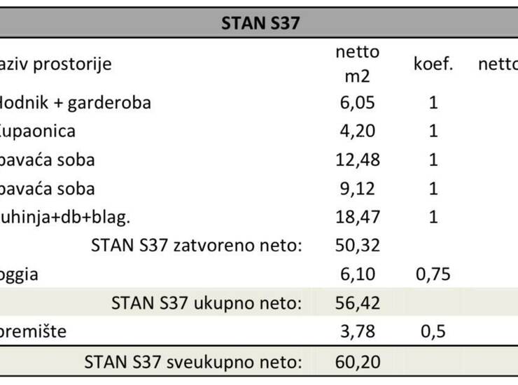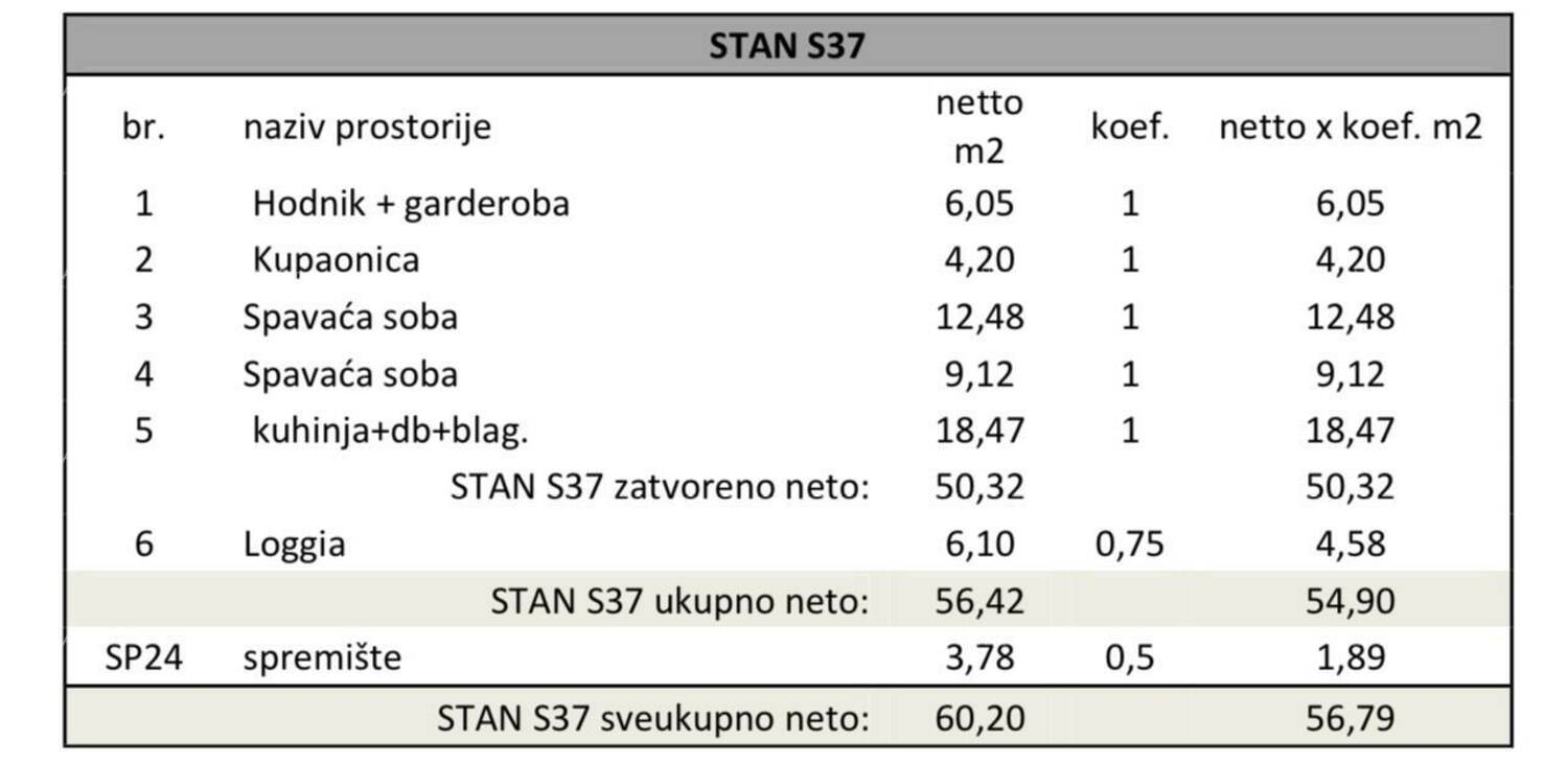 Stanu pripada spremište od 3.78 m2 i parkirno mjesto uz dodatnu nadoplatu.