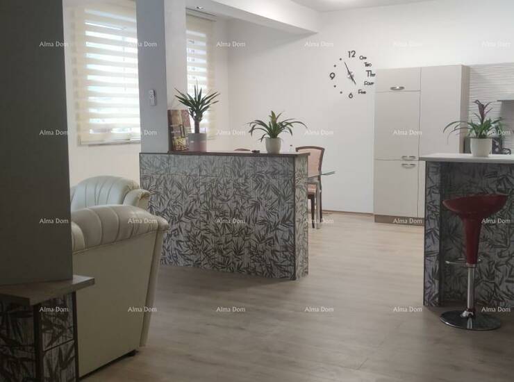 Stan se sastoji od dvije spavaće sobe, kupaonice, toaleta, hodnika, postranog dnevnog boravka s blagavaonicom od 52 m2.