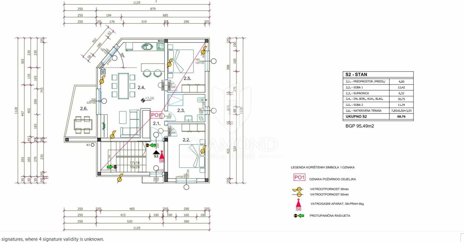 Smješten na prvom katu, stan se sastoji od ulaznog hodnika, dvije spavaće sobe, kupaonice te otvorenog dnevnog prostora s kuhinjom i dnevnim boravkom, iz kojeg se izlazi na natkrivenu terasu, savršenu za opuštanje tijekom cijele godine. Nekretnini pripadaju čak dva vanjska parkirna mjesta te ostava, što dodatno povećava funkcionalnost i vrijednost stana. Zgrada je u fazi izgradnje, a planirani završetak je studeni 2026. godine. Projekt se realizira prema suvremenim standardima gradnje, uz naglasak na kvalitetu i dugotrajnost.