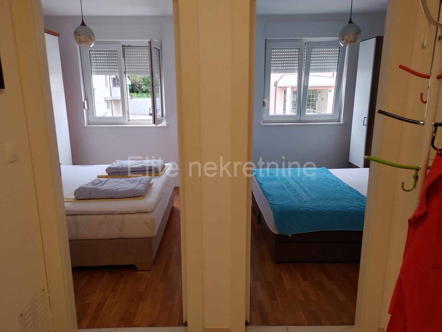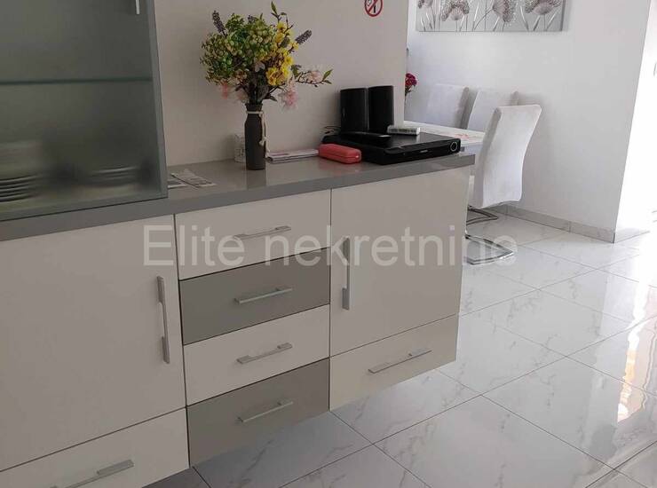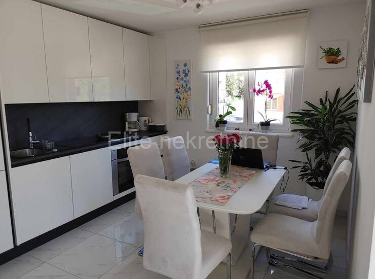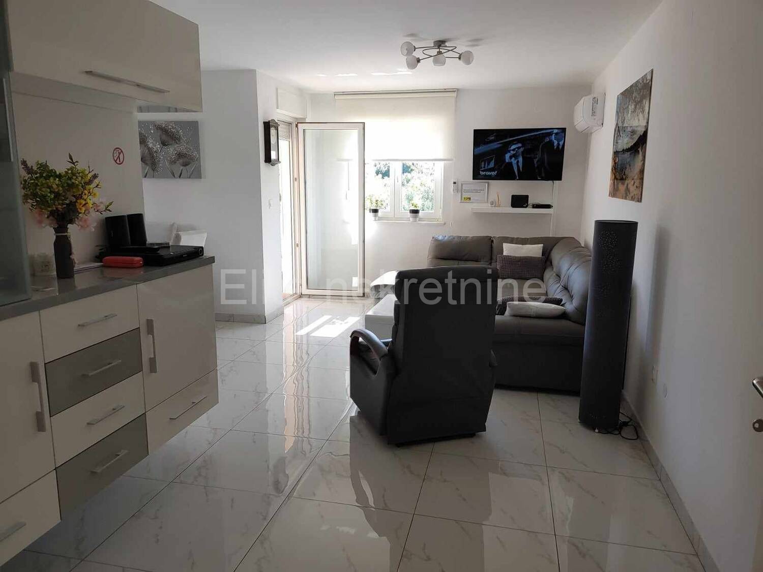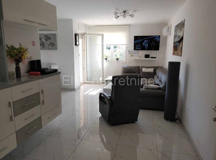 Sadrži: ulazni hodnik, kuhinju s blagovaonicom i dnevnim boravkom, dvije spavaće sobe, kupaonicu i terasu s djelomičnim pogledom na more. Stan je potpuno novouređen i opremljen.U podrumu zgrade je pripadajuća ostava, parking ispred zgrade.Stan je opremljen podnim grijanjem, klima uređajem, protuprovalnim vratima, kvalitetnom PVC stolarijom.Uredna dokumentacija.