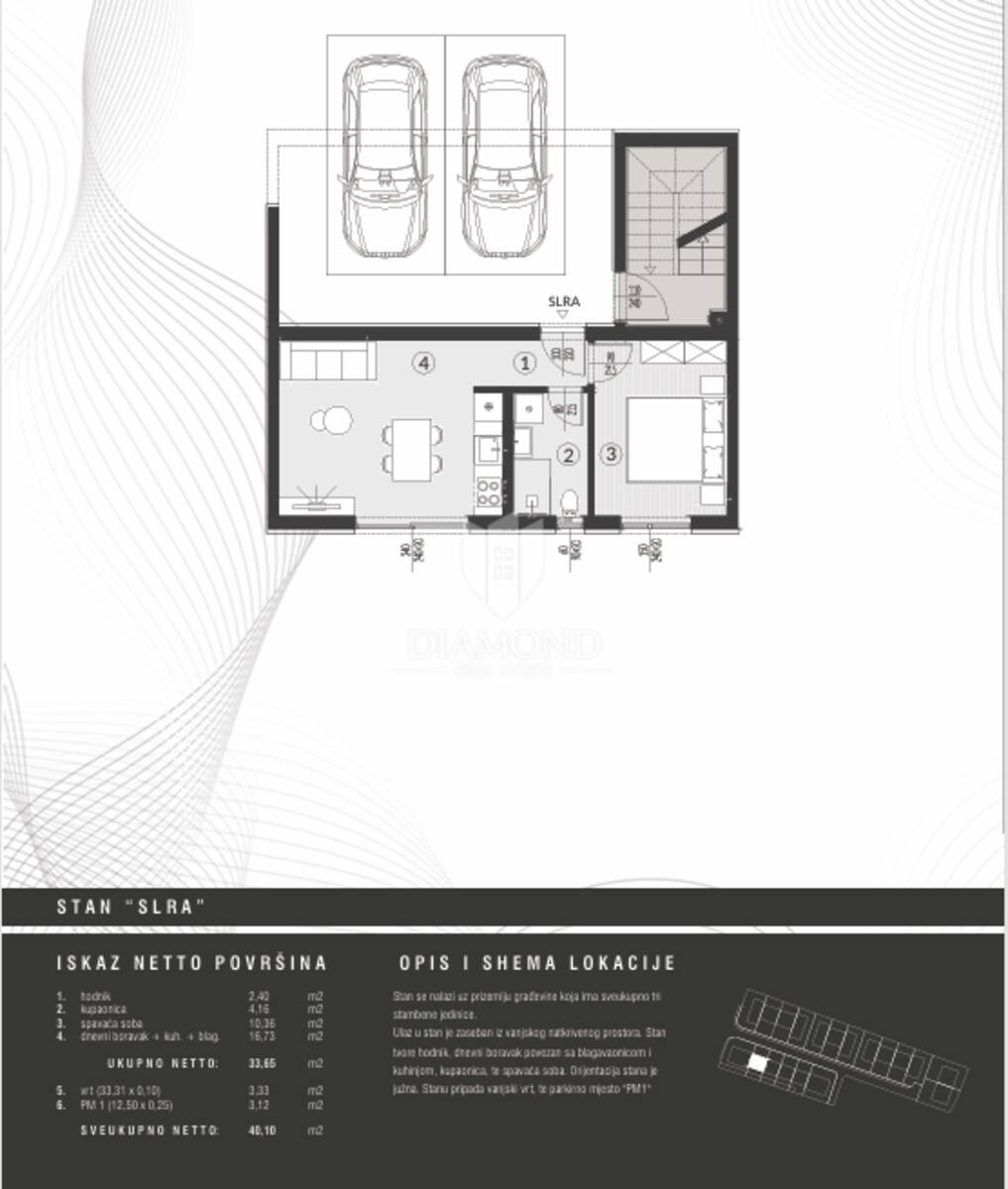 Stanu pripada i jedno parkirno mjesto, a sama gradnja prati moderne standarde kvalitete i udobnosti stanovanja.