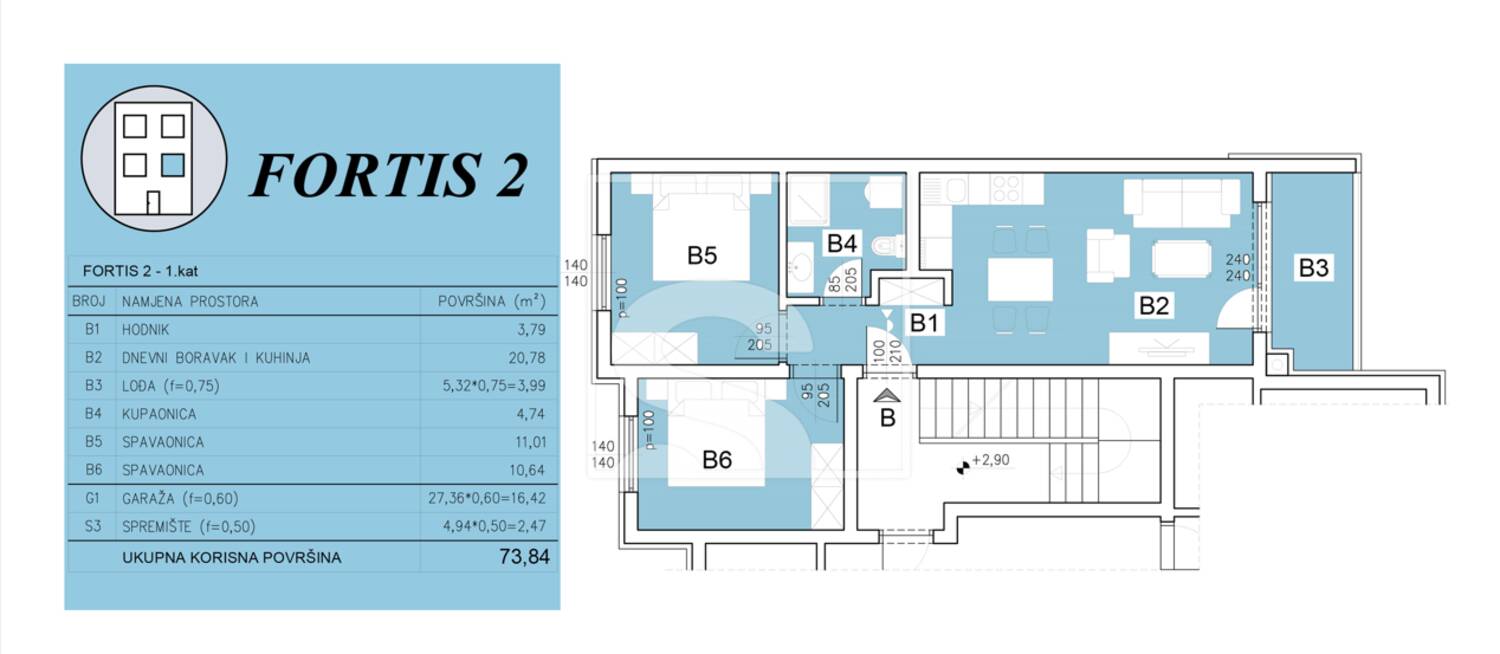 Dvosoban stan - 1. kat - novogradnja