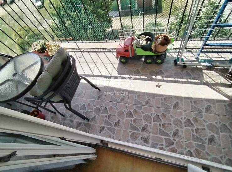 U ponudi imamo stan površine 69 m2. Nalazi se u stambenoj zgradi na petom katu, a sastoji se od dvije spavaće sobe, kuhinje sa blagovaonicom iz koje se izlazi na manji balkon, dnevnog boravka, još jedne terase, kupaonice, dva hodnika, dvije izbe.