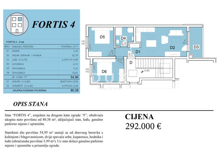 - Protuprovalna ulazna vrata, vanjska stolarija od PVC profila s dvoslojnim IZO staklom punjenim argonom i roletama.