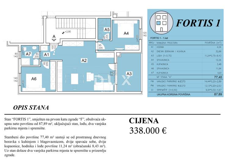 Pula, Monte Turco - Stan S6, 93m, 2 parking, 3 sobe