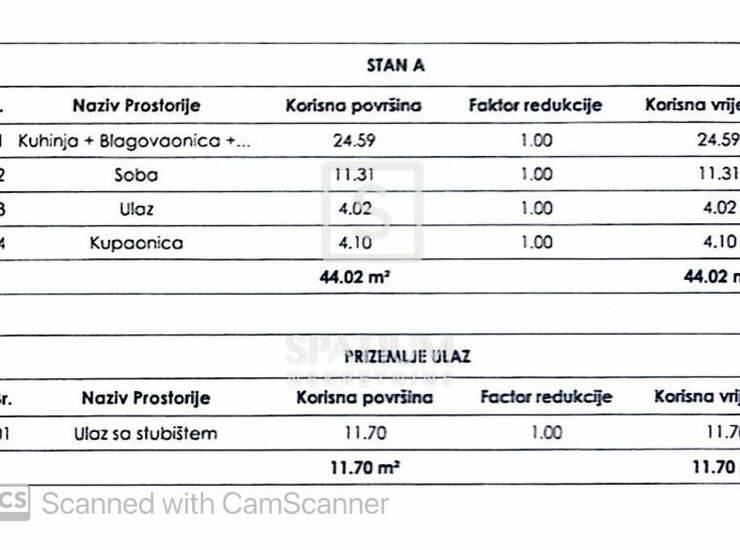 Stan je ukupne neto površine od 44 m² sastoji se od: