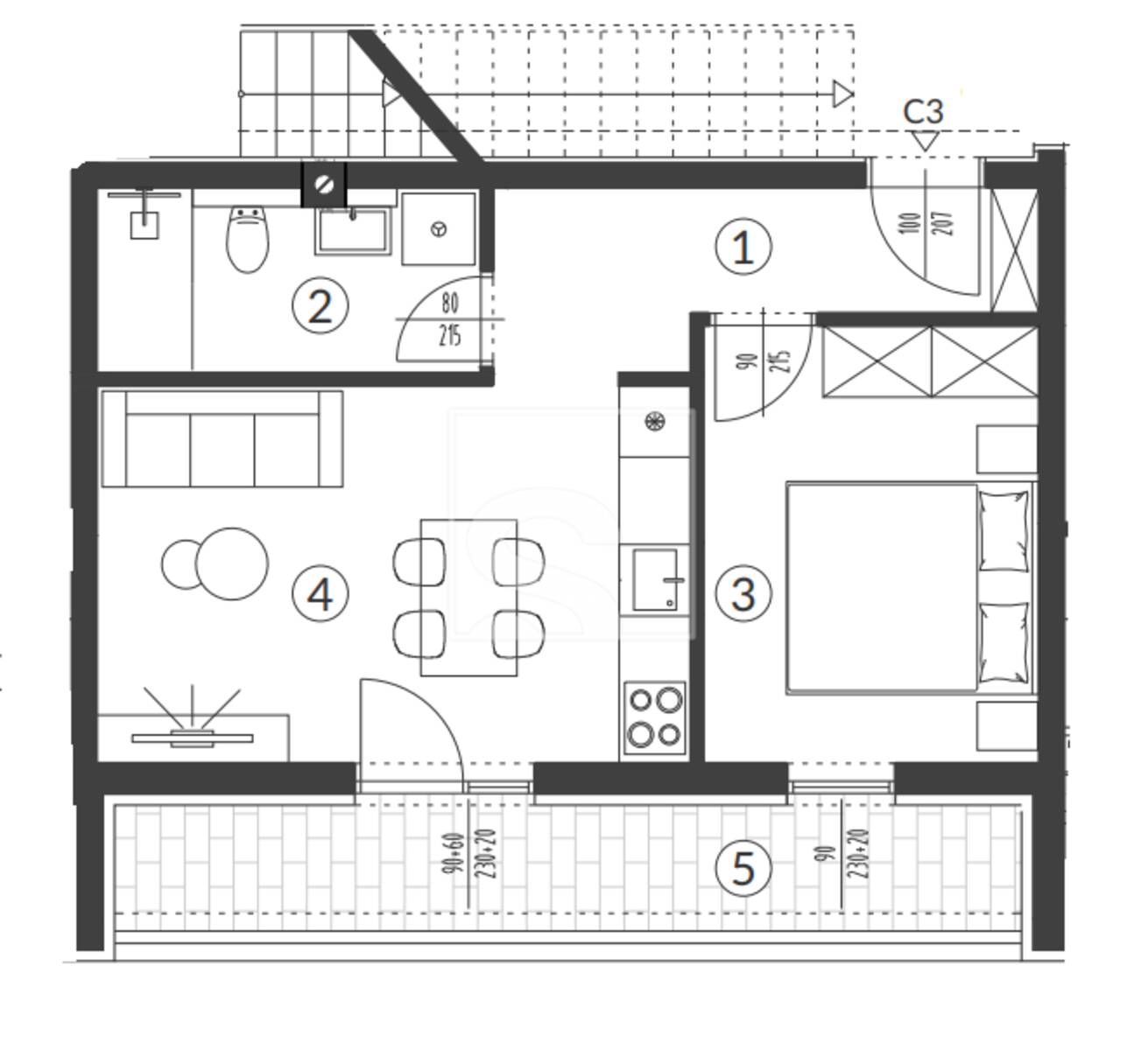 Stanovi su predviđeni kao veći komforni jednosobni te manji dvosobni.