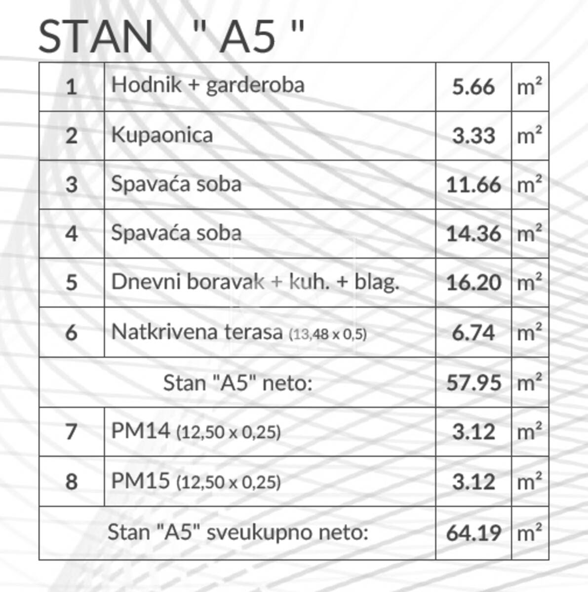 Stanovi su predviđeni kao veći komforni jednosobni te manji dvosobni.