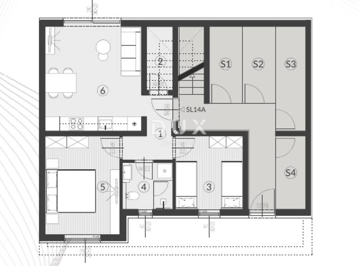 - Spremište S1 — 3,81 m² po koef. 0,75 - 2,86 m²