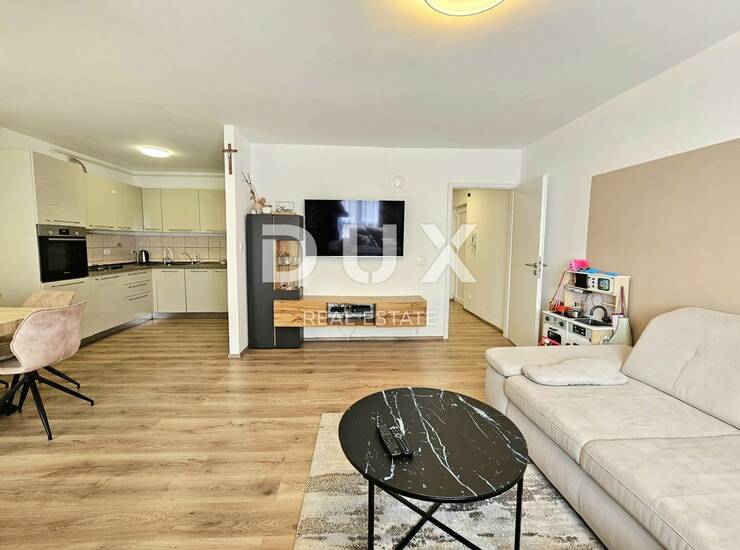 Riječ je o stanu koji se sastoji od sveukupno 72,87m2 stambenoga prostora, te koji se smjestio na 2. katu manje stambene zgrade. Ulazom u stan dočekat će vas prozračno predvorje s predviđenim prostor za garderobu, a koje ujedno, prostor stana dijeli na dio namijenjen dnevnome životu i onaj nešto privatniji dio sa spavaćim sobama.