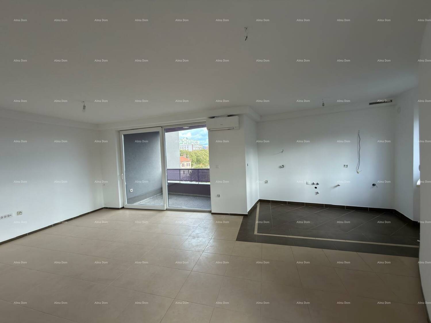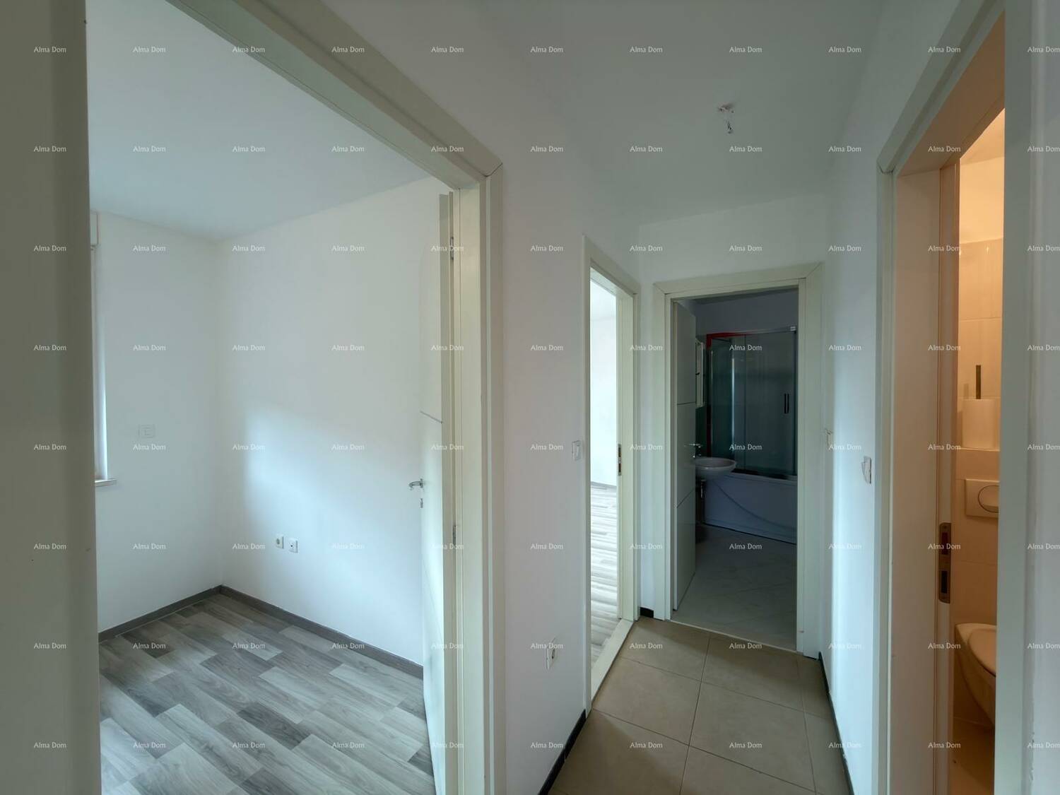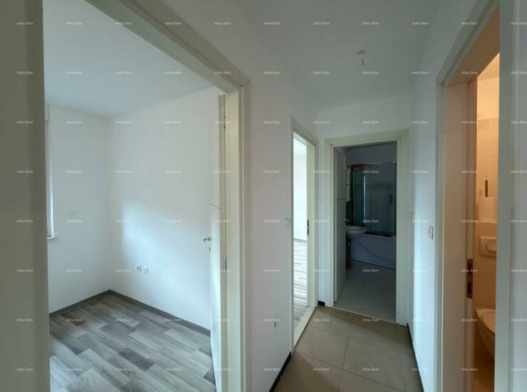 Stan ukupne površine 84.56 m2, sastoji se od hodnika-predprostora, dnevnog boravka+kuhinje, dvije sobe, kupaonice, WC-a, loggie.
