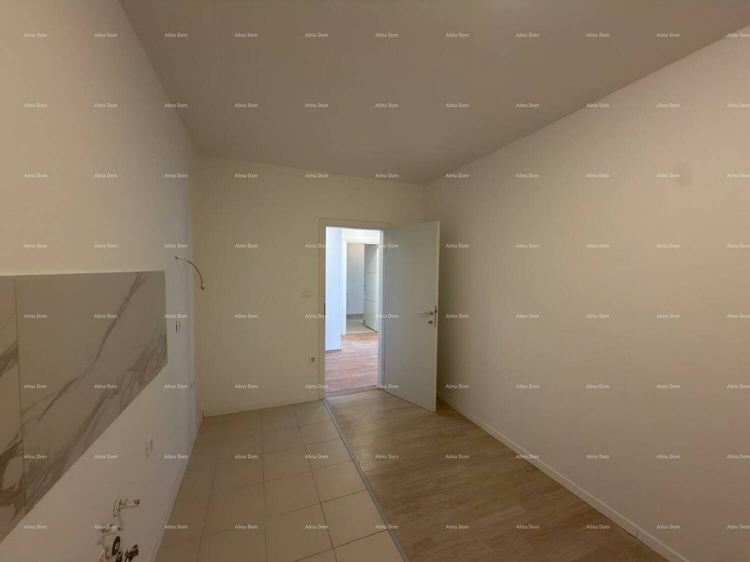 Stan ukupne površine 89.26 m2, sastoji se od hodnika-predprostora, dnevnog boravka+kuhinje, dvije sobe, kupaonice, WC-a, predprostora, loggie.