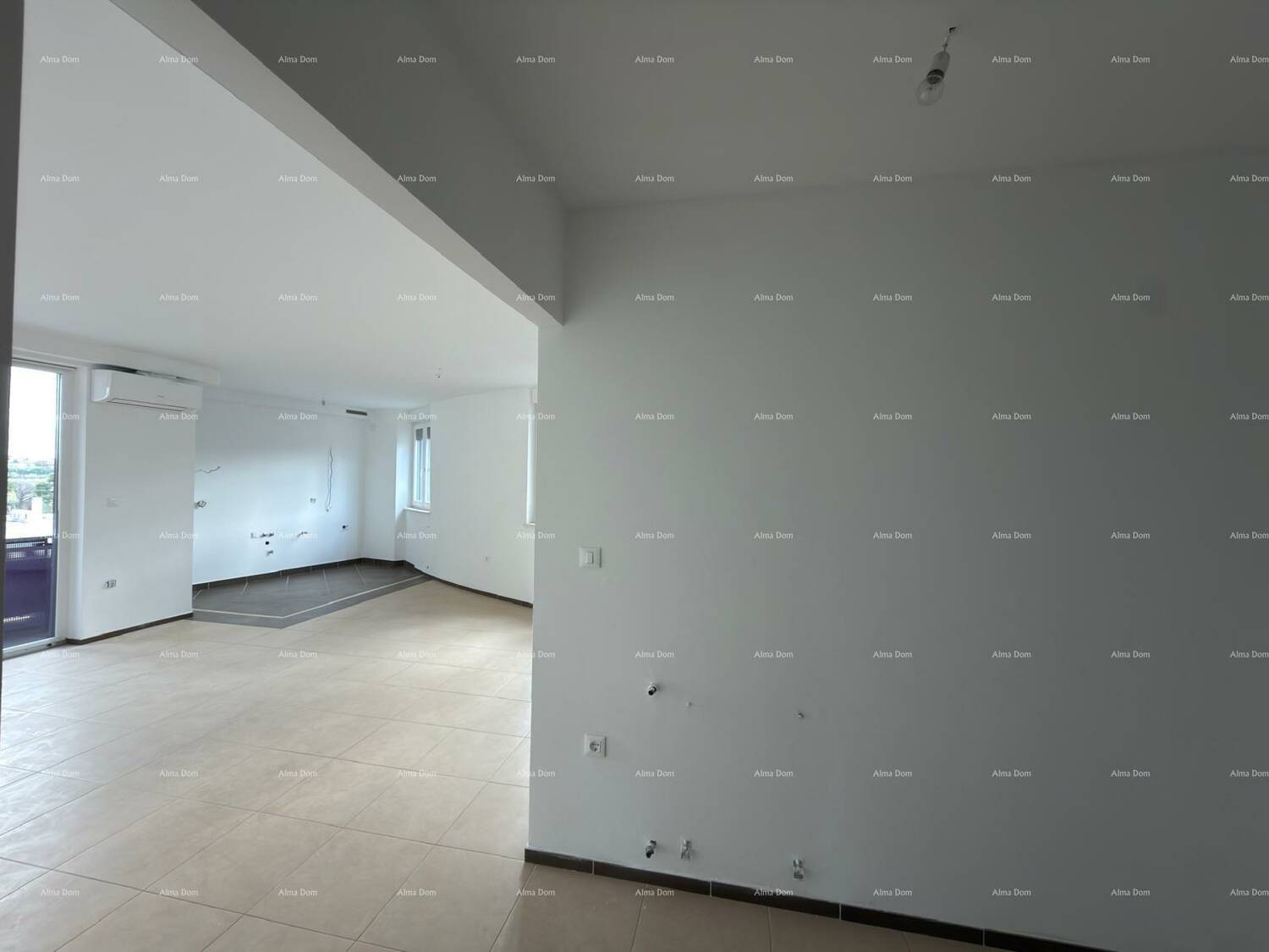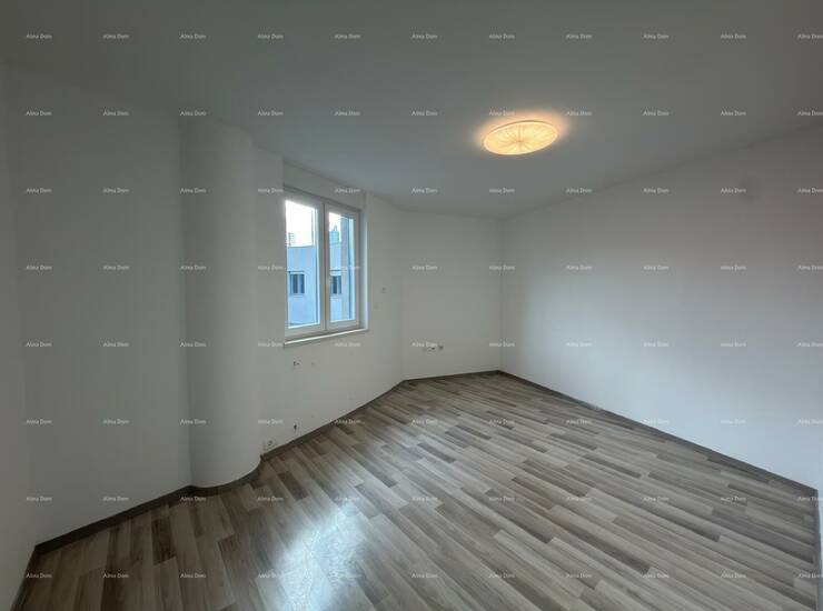 Stan ukupne površine 84.56 m2, sastoji se od hodnika-predprostora, dnevnog boravka+kuhinje, dvije sobe, kupaonice, WC-a, loggie.