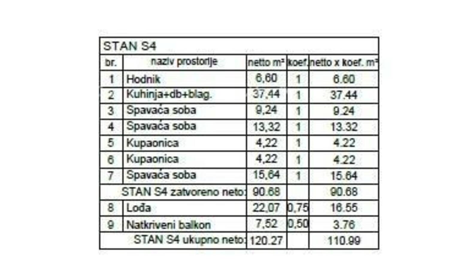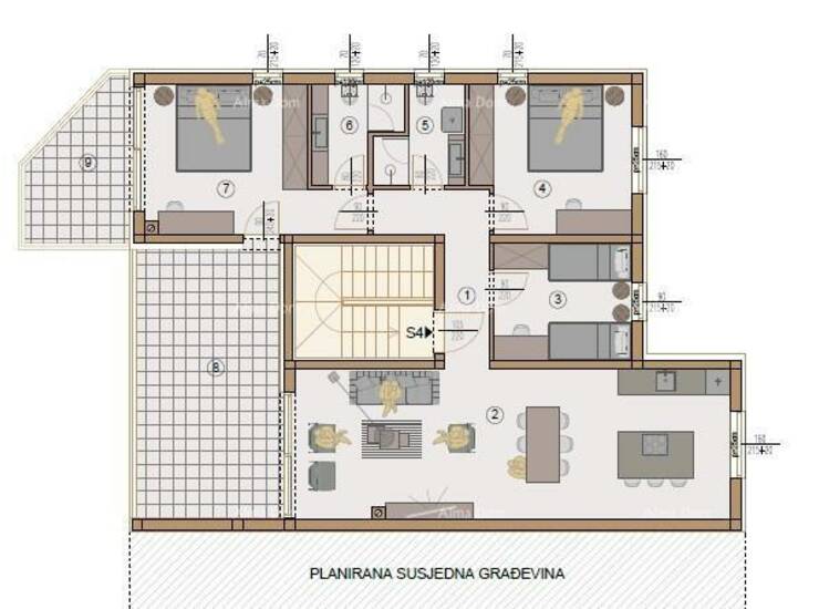 U ponudi je stan S4, smješten na drugom katu Zgrade 6 ima površinu 111 m² (90,68 m² zatvoreno) s tri spavaće sobe, dvije kupaonice, dnevnom zonom, lođom i natkrivenom terasom. S obiljem svjetla i otvorenim pogledom, ovaj stan nudi ekskluzivan i miran prostor za obiteljski život.