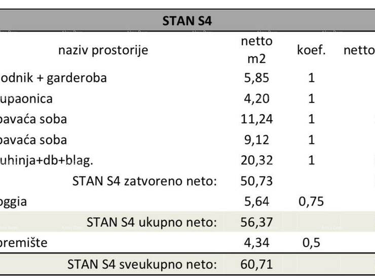 Napomena: Stanu pripada ostava 2,17m2 i parkino mjesto 2,5 m2, koji su uključeni u cijenu stana.