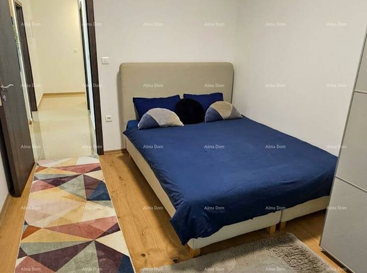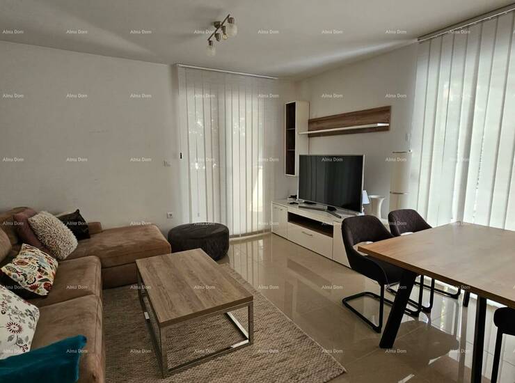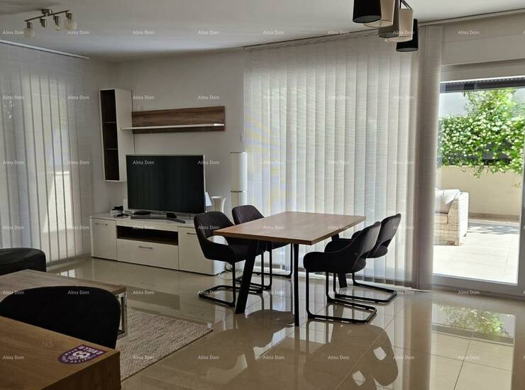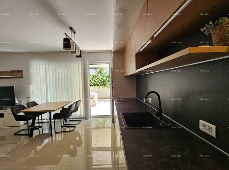 U predivnoj Puli, na samo 100 metara od mora, smjestio se ovaj moderni stan u prizemlju novogradnje. Sa svojih 100 m² ( neto stan 60 m2 ), uključuje dvije spavaće sobe, udobnu kuhinju s blagovaonicom, dnevni boravak, hodnik i kupaonicu. Prostrana terasa od 80 m² (natkrivena 30 m2, nenatkrivena 50 m2 ) savršena je za uživanje na otvorenom. Stan je opremljen sustavom podnog grijanja u kupaonici i klimom, a individualno grijanje na struju osigurava udobnost tijekom cijele godine. Udaljenost od centra grada je 2500 m, a parkirno mjesto u garaži dodatna je pogodnost koju će cijeniti svaki vlasnik. Ova nekretnina predstavlja idealan spoj modernog života i blizine prirode.