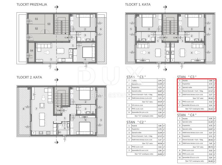 Tako u ovoj zgradi s ponosom predstavljamo stan na 1. katu koji se sastoji od 46.62 m2.