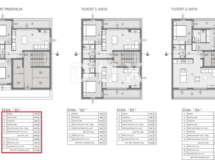 Tako u ovoj zgradi s ponosom predstavljamo stan u prizemlju koji se sastoji od 71,76m2.