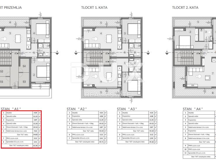 Tako u ovoj zgradi s ponosom predstavljamo stan u prizemlju koji se sastoji od 61.36 m2.