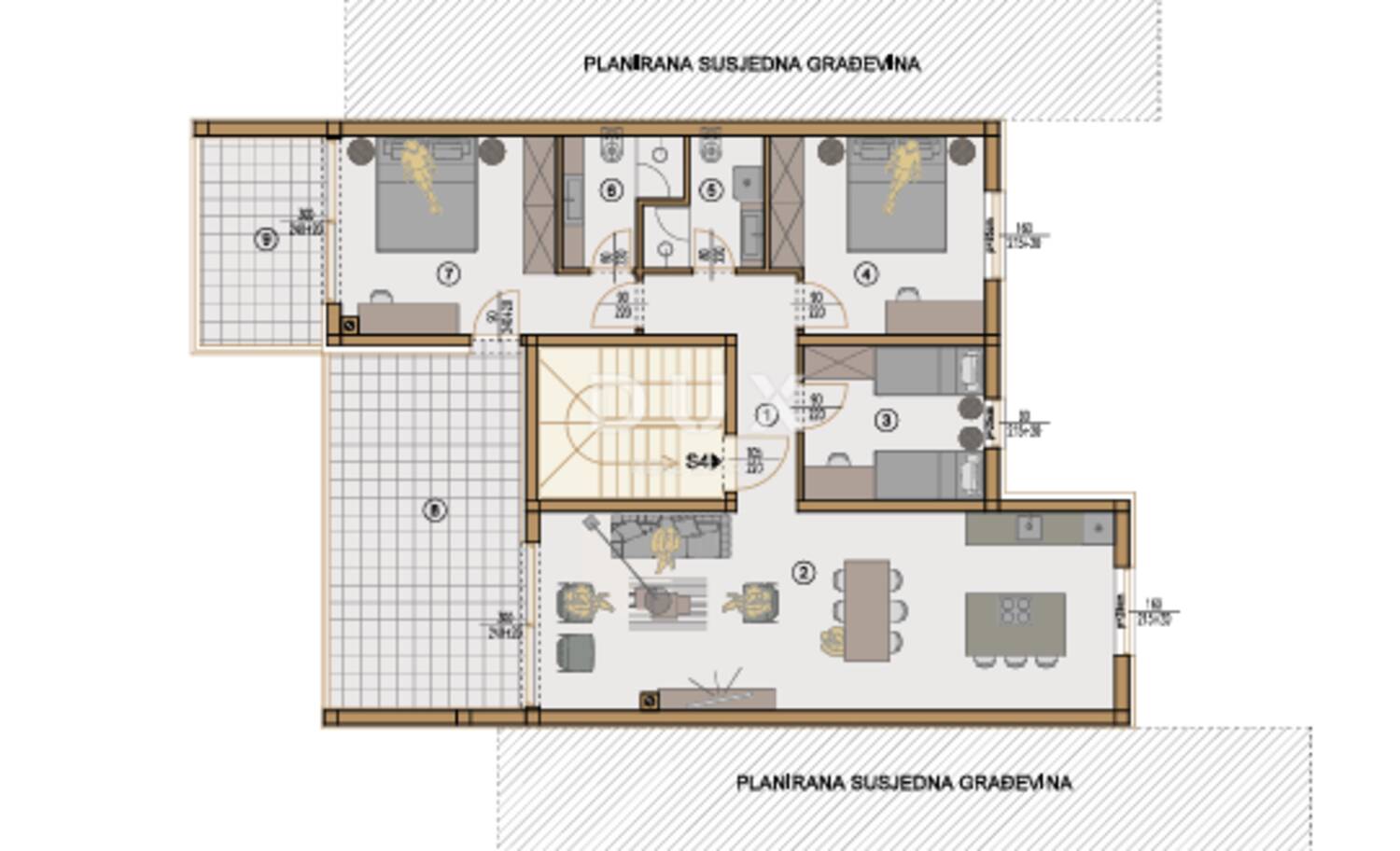 -master spavaća soba 15,64 m², s vlastitom kupaonicom (4,22 m²) i dodatnom natkrivenom terasom od 4,02 m²