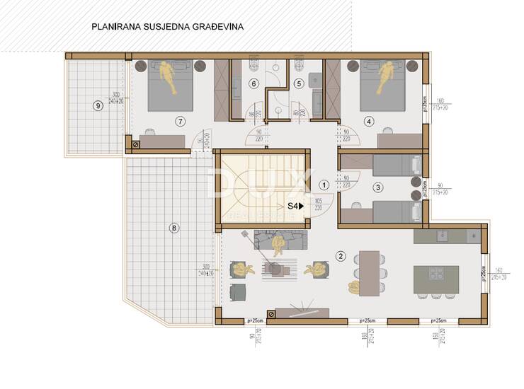 -master spavaća soba 15,64 m², s vlastitom kupaonicom (4,22 m²) i dodatnom natkrivenom terasom od 4,02 m²