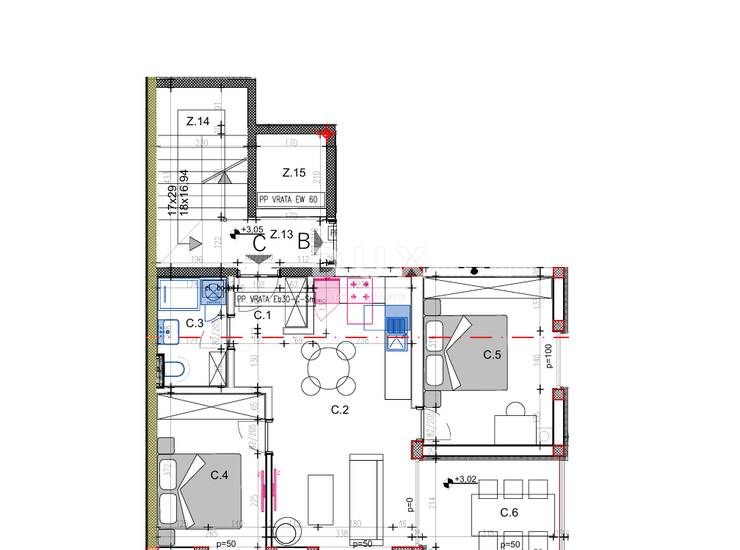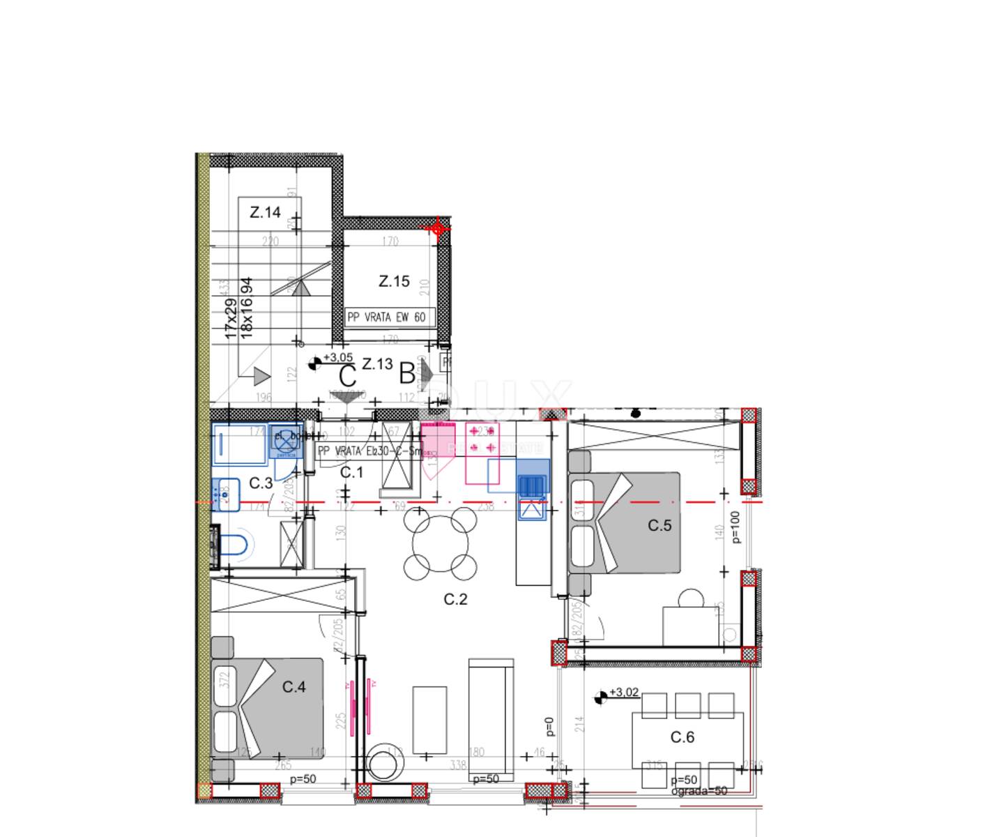 Zgrada B, stan C. Stan na prvom katu s natkrivenom terasom!